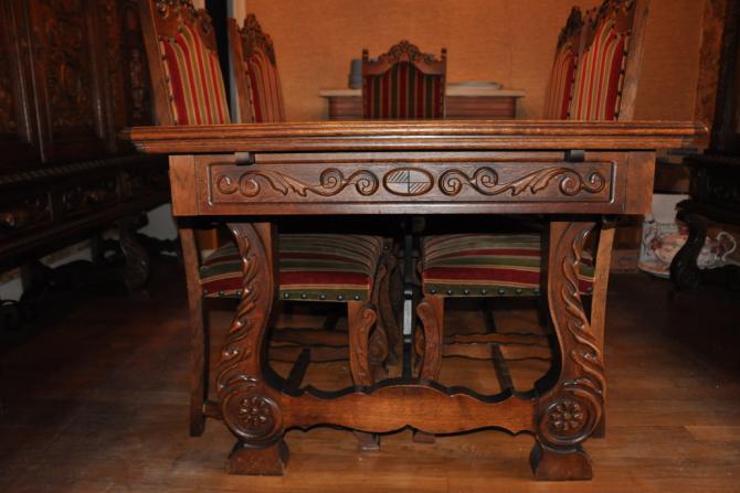 Антикварні меблі продаж антикварних меблів Іспанець 1960рік матеріал ДУБ .В даний комплект входять КОМОД ВІТРИНА СТІЛ 1.60-1.0m В РАЗЛ. 2.60-1м Та 6 стільців. Меблі в хорошому стані.Продаж антикварних меблів по Україні з доставкою.Всі питання на пошту або телефон. |