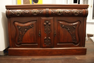 автетичний креденс у стилі періоду Сецесії.Основна декоративна оздоба-маки,збережені всі оригінальні металеві деталі,реставрований. |