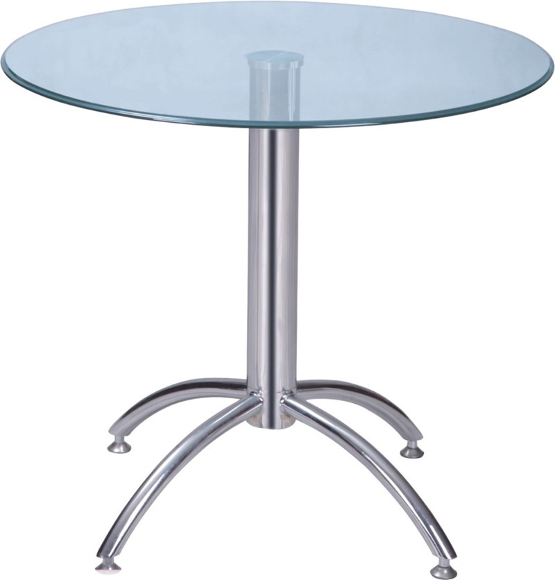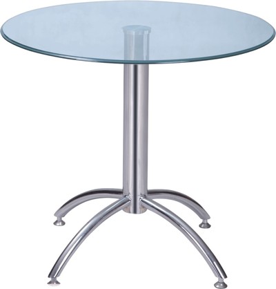 Обеденный стол, столешница из закаленного стекла толщиной 10 мм, хромированное основание. Размер: диаметр - 80, высота - 72. |