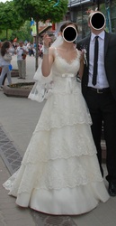 Продам весільну сукню в дуже хорошому стані. Колір айворі, ріст 170см+каблук 10-12см. Сукня вдягалась лише раз - на офіційну частину і фотосесію. Ціна 2200грн, підюпник додається. Можливий торг. Також є міхова накидка, нова, жодного разу не вдягалась, ціна 200грн