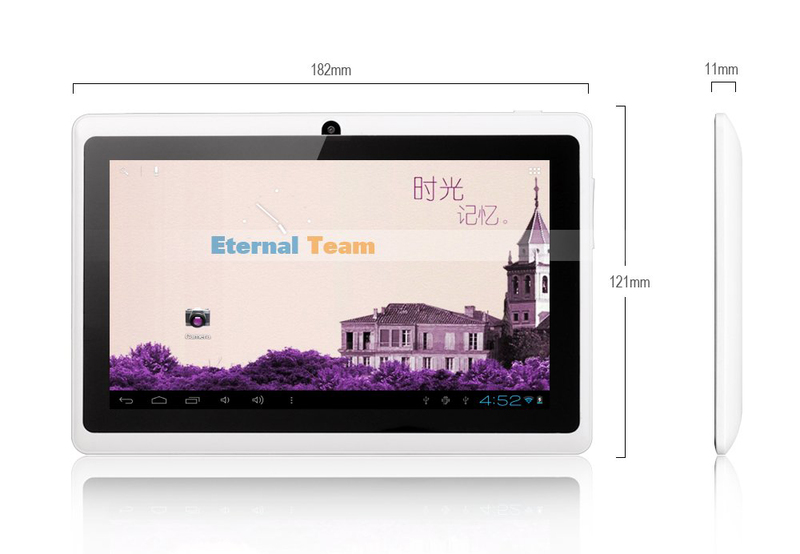 "Год выпуска: 2013 Опер. сист.: Android 4.0.3 Процессор: All Winner A13, 1.2 GHz (Cortex-A9) Видеоускоритель: Mali-400 MP Оперативная память (Мб): 1024 Встроенная память(Гб): 4 Экран: сенсорный Размер экрана: 7 дюймов Тип экрана: TFT Цветопередача: 16 млн цветов Разрешение экрана (px): 640 x 800 Камера фронтальная (Мп): 1.3 Коммуникации Wi-Fi: 802.11b Внешние 3G-модемы Динамик Выход наушников: 3.5 мм Емкость аккум. (мА·ч): 3700 Карты памяти: microSD, microSDHC Разъемы: USB-хост, miniUSB Размеры (ширина х высота х толщина): 182 x 121 x 6.5 мм Вес(г): 267 Другое: G-Sensor" |