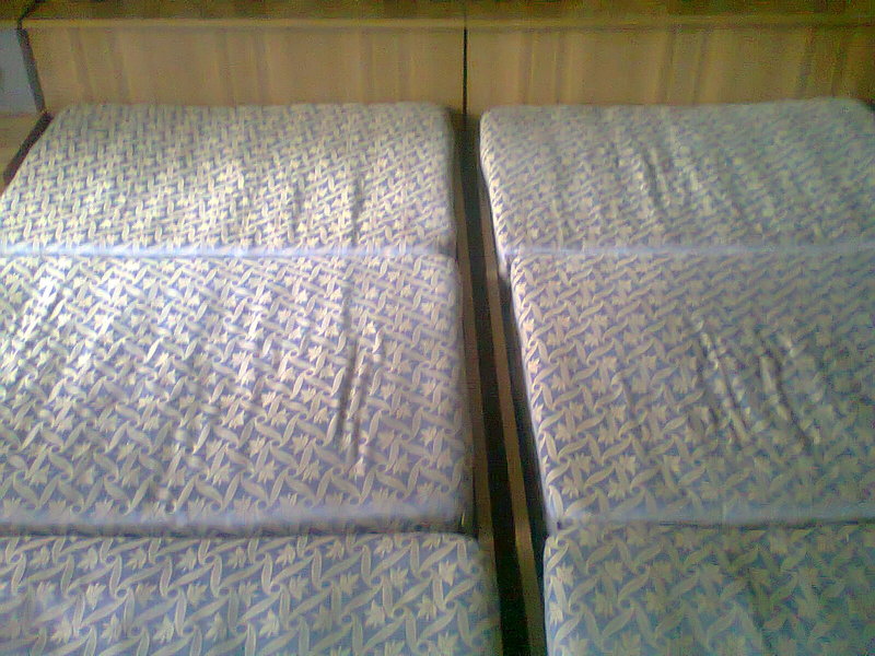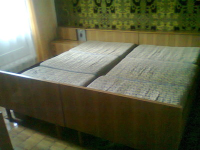 Продаю двухспальную кровать в отличном состоянии. Кровать производства Германии. Цвет-светлый орех. На каждой кровати по три пружинных матраца. Так же продаются две прикроватные тумбочки. |