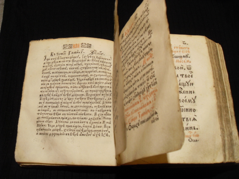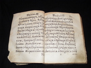 она называется "СЛУЖЕБНИК", первая страница не сохранилась, равно как и последняя, а также корочки, размеры: толщина 7см, ширина 16см, высота 20см, 11 строк, два цвета, основной черный и заглавный красный, имеются пометки от руки свидетельствующие о ее покупке за 12 злотых и передаче в храм в с. Хмелевку, (год передачи не указан), и прочее... Имею еще одну книгу "Ирмологий" 1898г размеры:20х40х4 |