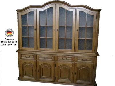 Сервант привезена з Німеччини.Складається з двох частин: низ(комод), верх(скляна вітрина) Має наступні розміри: ширина 196см, висота 195см, глибина 43 см. |