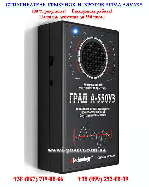 Ультразвуковой отпугиватель «Град А-550» - эффективное средство для борьбы с крысами и мышами в различных типах помещений с площадью до 550 кв.м. Прибор гарантирует полное избавление от грызунов на заявленной площади, что имеет экспериментальное подтверждения. Эффективность данной модели прибора для борьбы с грызунами достигает за счёт качественной элементной базы отпугивателя и запатентованным рисунком ультразвукового отпугивания. Благодаря нему эффект от работы отпугивателя не теряется со временем, так как грызуны не могут адаптироваться к работе устройства. Град А-550УЗ влагостойкий и может работать в широком температурном диапазоне. Он универсален, помимо грызунов может использоваться для защиты от кротов земельных участков. Купить ультразвуковой отпугиватель от мышей и крыс «Град А-550УЗ» по самой низкой цене с бесплатной доставкой по Украине Вы можете в нашем интернет-магазине «I-Protect», подробно по т. О677190866 |
