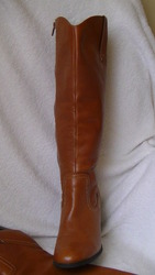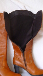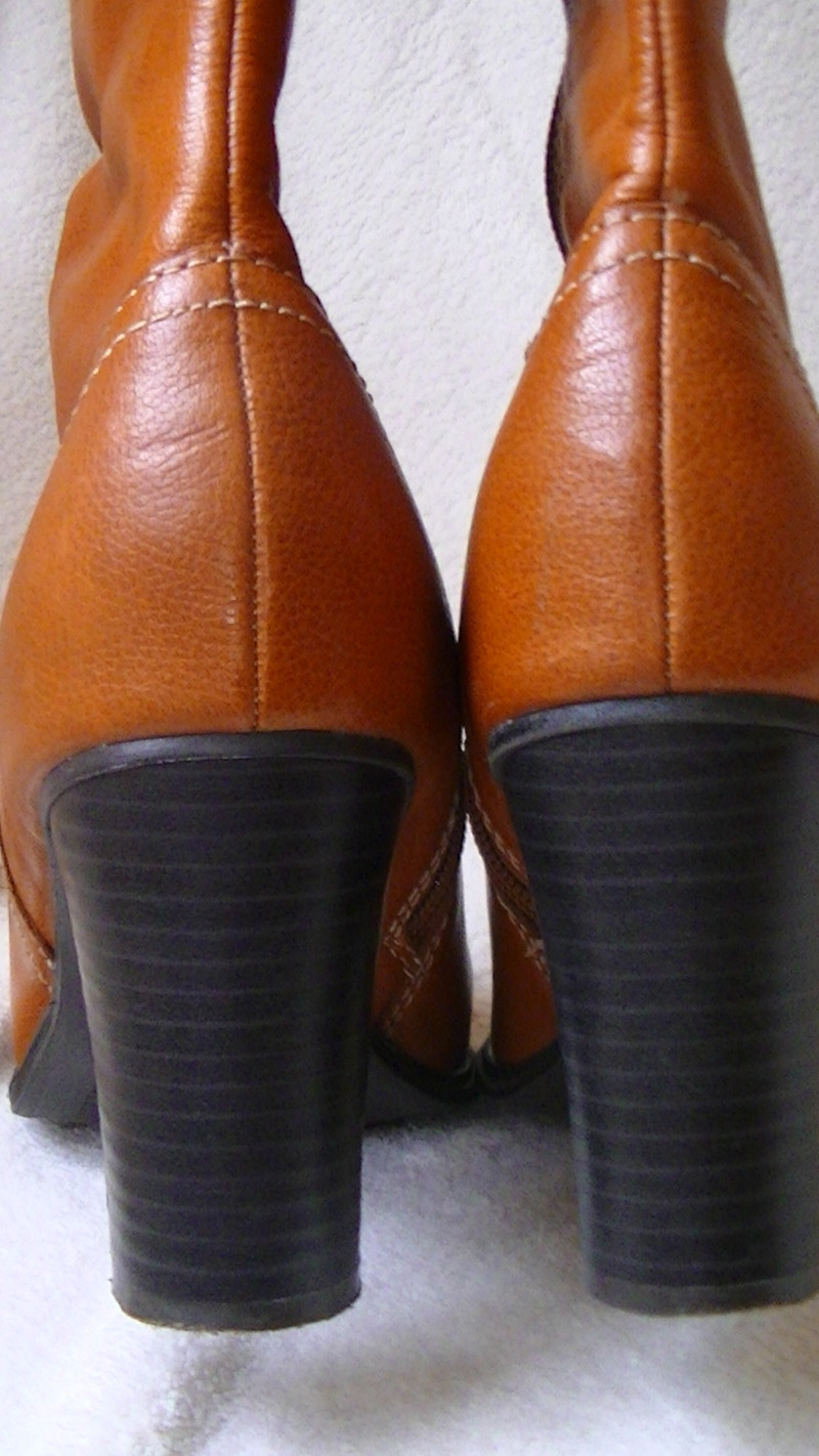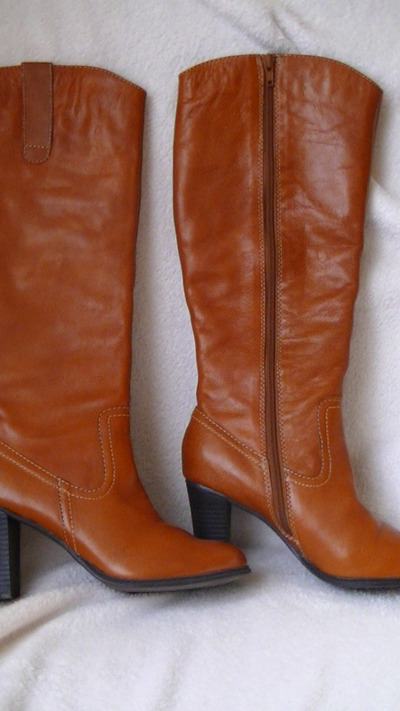 Дуже ефектні і нові чоботи. Якісь шкіри висока, не зрівняти з тим що продають в нас. Носок заокруглений, замок з середини, халява не вузька (телефонуйте розповім) Колір - насичений рижий. Утеплені - на штучний фліс ( підійдуть на зиму без снігу). Підошва- поліоритан. Каблук слойоний, стійкий ,8 см.Колодка дуже зручна! Розмір 37 - 37,5 . Стєлька - 24,5см, висота халяви від кінця каблука і вверх- 29 см, обхват гомілки - 38 см.Деталі по переписці.По Новій Пошті, доставка за рахунок покупця. |