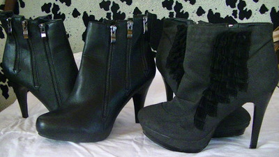 Розпродаж залишку.Демосезонні боти з Іспанії, фабрика в Елче що закрилась. Залишилось 2 пари36, 2 пари 37, 1 пара 38 розміру, 2 пари 40.Якісний замінник, утеплені, замок зсередини (інші замки для декорації). Каблук висотою 9 см, але відніміть 2,5см висоти платформи-5,5см фактично. Зручні, колодка стійка, носяться чудово( собі залишила і родичам), можна мити водою часто. За 3 роки не розклеїлись, нема пошкоджень(в моїх). 1 пара під замш-37 розмір. Ціна за пару - 160грн. Собівартість пари 10 євро. |