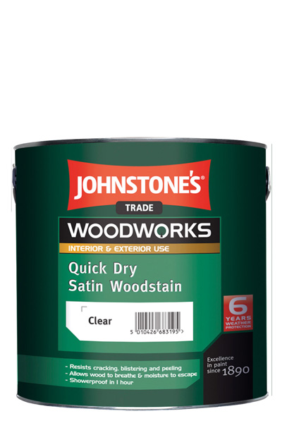 Предлагаем быстросохнущий глянцевый цветной лессирующий антисептик Johnstones Quick Dry Satin Woodstain (0.75л / 2,5л), разработанный специально для защиты и окрашивания гладкой шлифованной древесины твердых и мягких пород. Водорастворимый лак для дерева ТМ Johnstones быстро сохнет. Образует полуматовые покрытия, позволяет провести все работы по обработке дерева за один день.