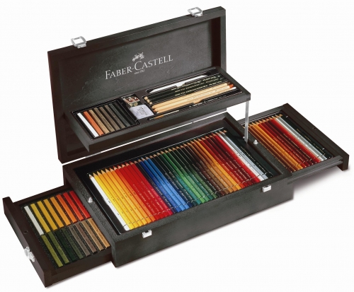 Полихромные карандаши POLYCHROMOS – 36 оттенков Акварельные карандаши ALBRECHT DURER – 36 оттенков Полихромные пастели POLYCHROMOS – 36 оттенков Пастельные карандаши серии PITT MONOCHROME (белый мел, сангина, вап-дик коричневый) – 3 шт Угольные карандаши – 3 шт Кисть – 1 шт Палочка для растушевки – 1 шт Металлическая точилка с двумя отверстиями – 1 шт Художественный ластик – 1 шт Мелки ассорти – 8 шт |
