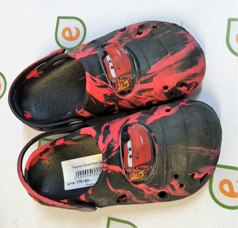 Резинові крокси з малюнком тачки 95 , колір чорно-червоний, розмір 28, матеріал резина, стан б/у. |