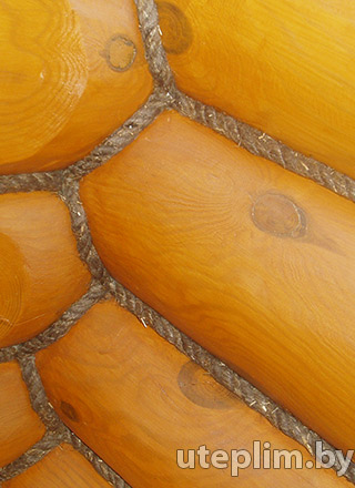 + идеально ровный шов прокладки межвенцового утеплителя льноватин позволяет отказаться от внутренней обшивки стен вагонкой;